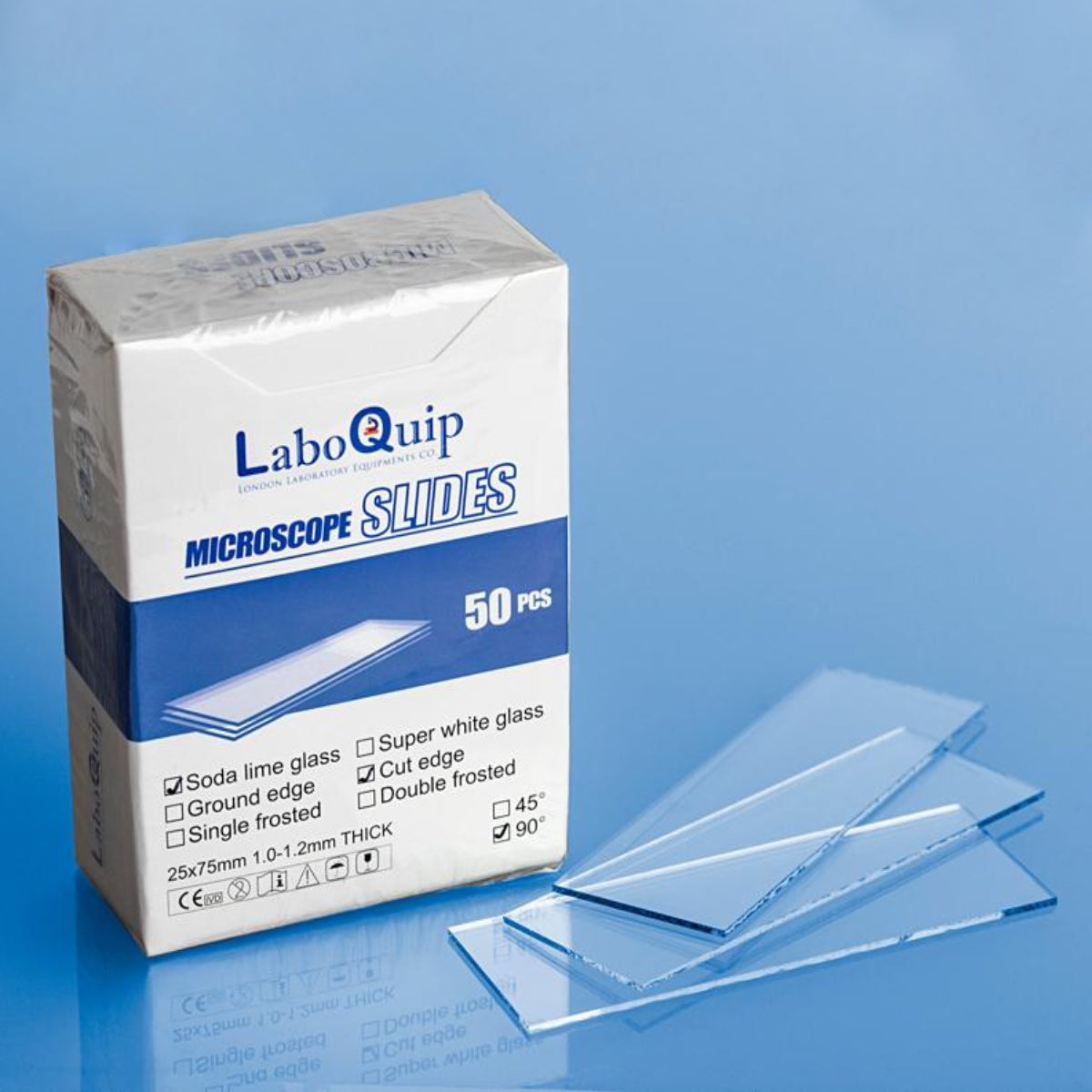 LaboQuip Microscope Slide 7102, Cut edge 90°, Glass (Pack of 50Pcs), CE & UKCA Certified