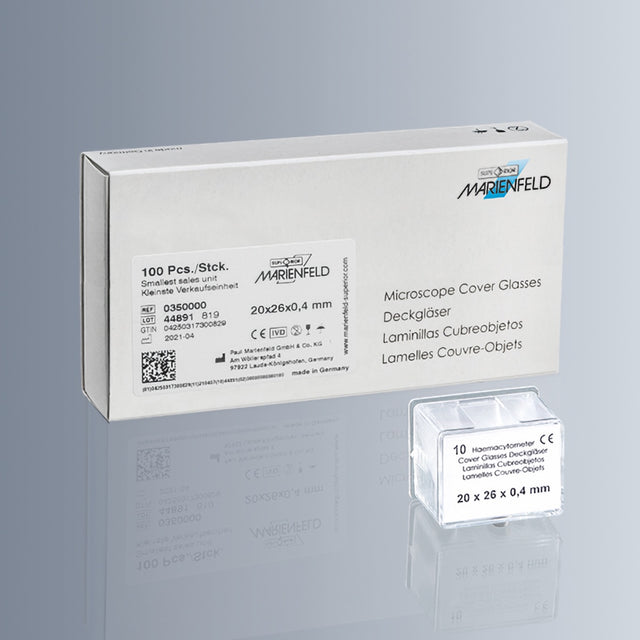 Marienfeld(Germany) Haemocytometer Microscope Coverslips 20x26mm, 0.4mm High quality Borosil. Glass(x10Pcs) is backordered and will ship as soon as it is back in stock.